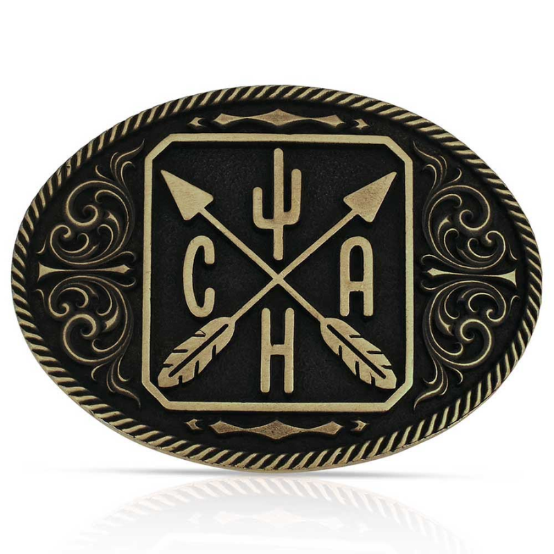 Create an accountMake an impact with the Gravestone Buckle. This antique finish buckle blends high contrast rugged edge with timeless western style. A bold addition to everyday attire, this oval shaped buckle has bold eye catching design in black and gold finishes. The unique design features arrows, cactus and classic western filigree bringing a modern touch to classic western symbols. Compact and versatile for an everyday piece. The Gravestone Buckle has a standard 1.5 inch swivel.