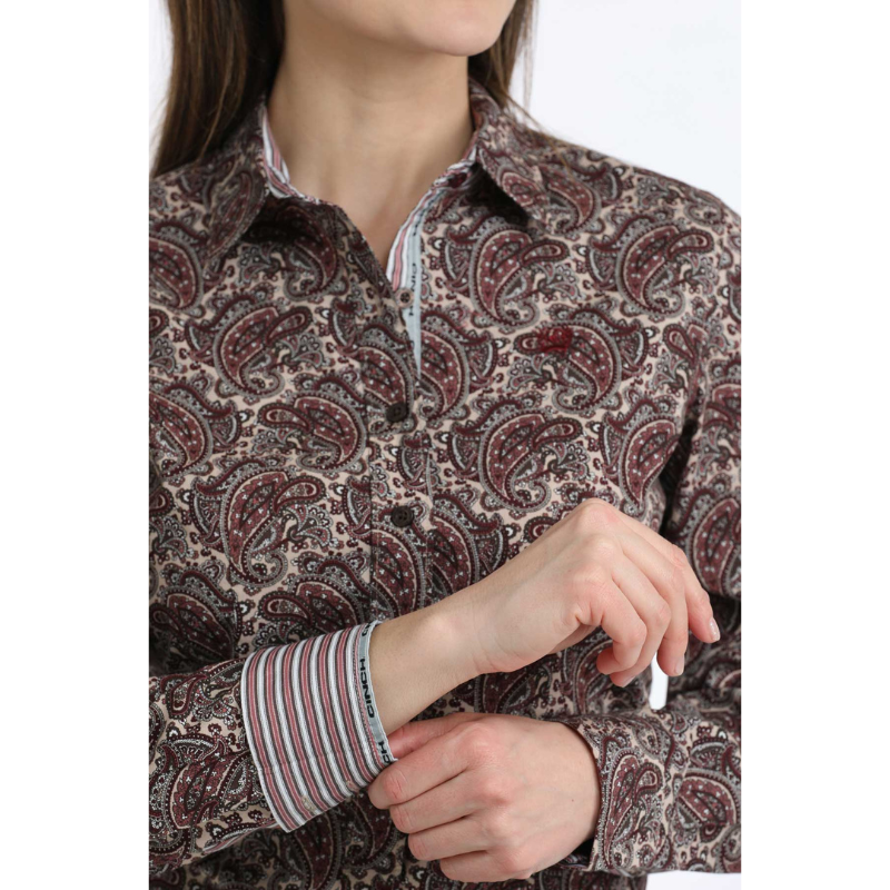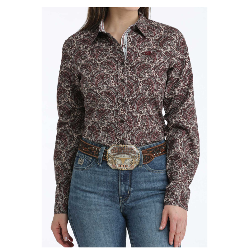 Cinch Paisley Print L/S Shirt - Burgundy