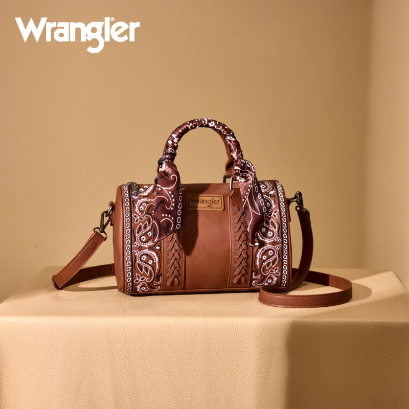 Wrangler Bandana Paisley Print Barrel Crossbody - Brown